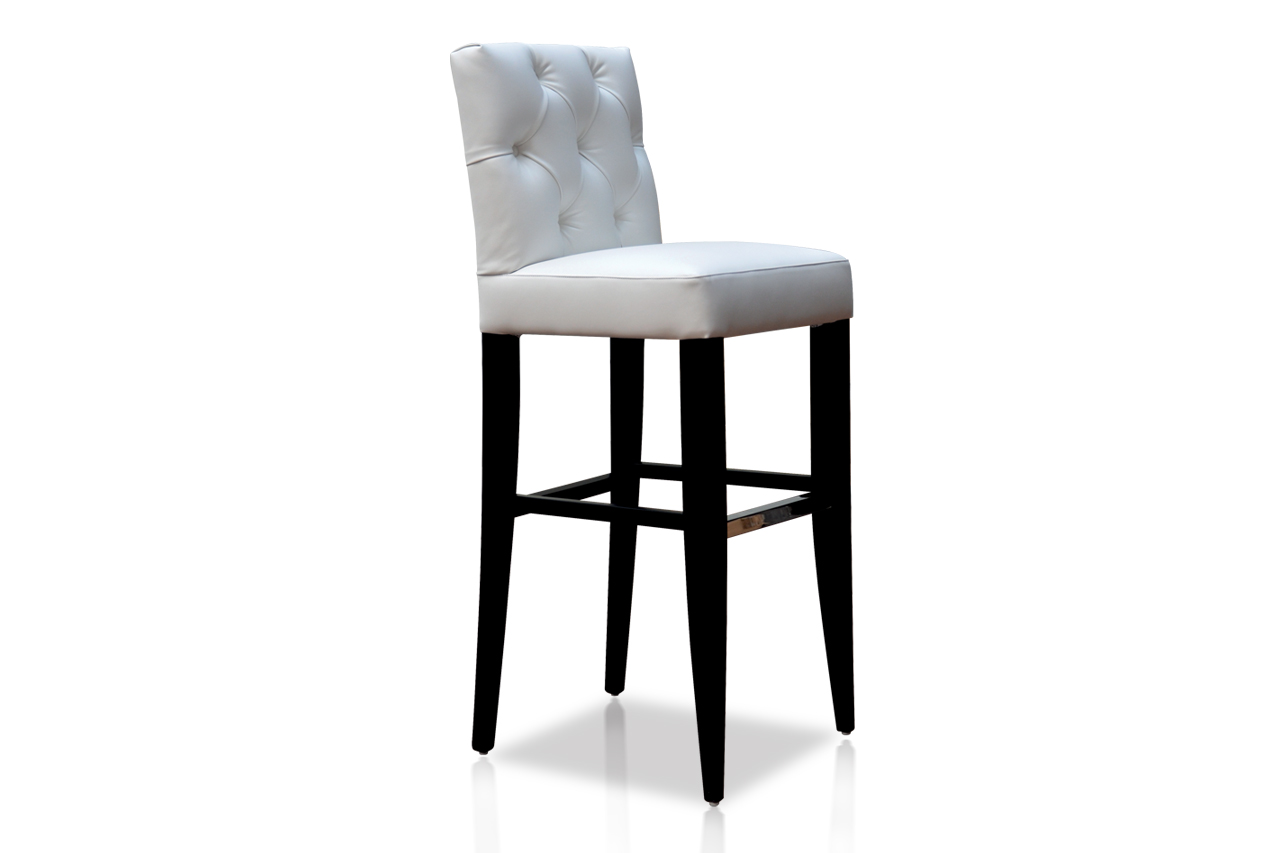 Fully upholstered bar stool with tufted inside back.modern contemporaneo capitonné tufted