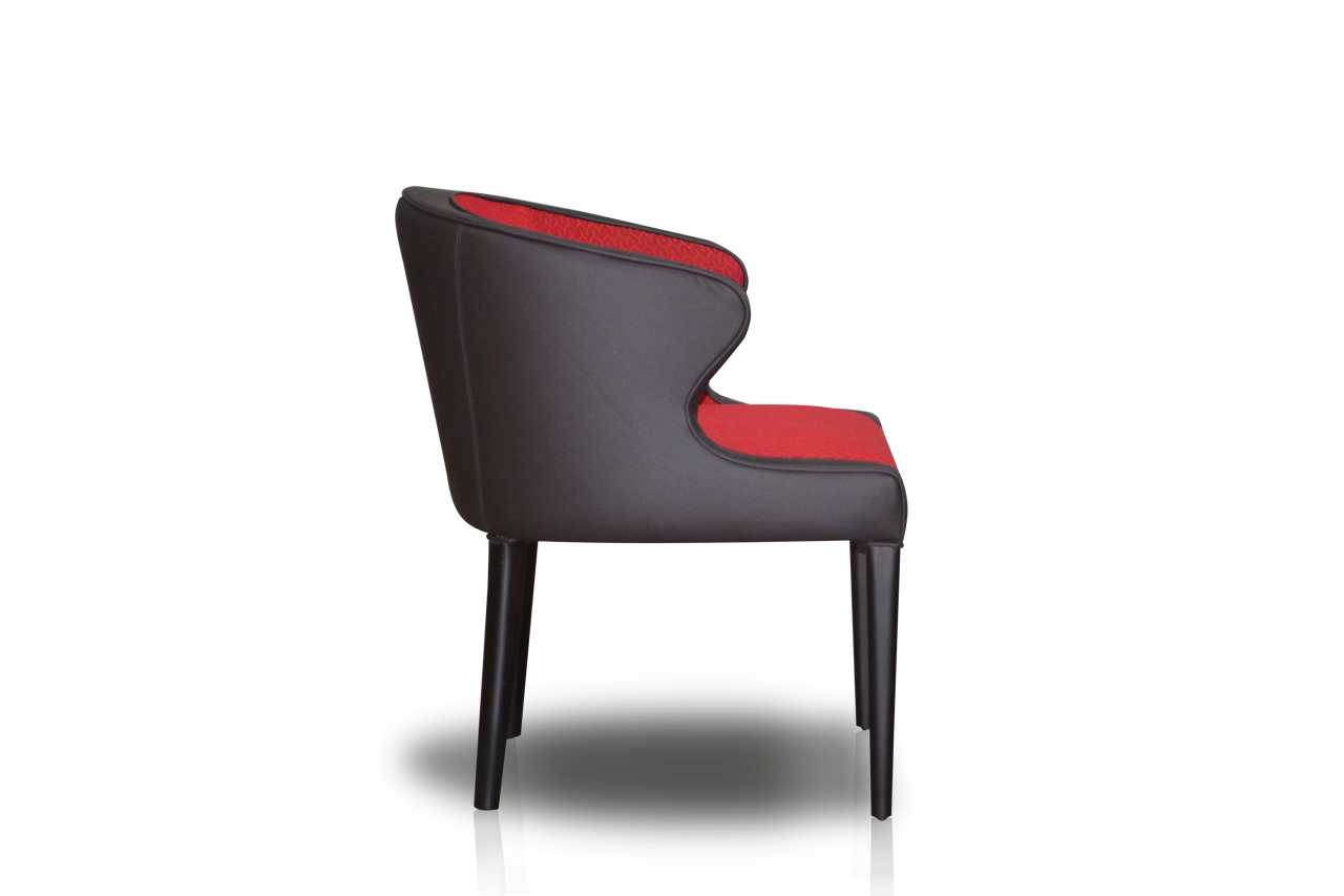 Fully upholstered dining armchair with wooden legs